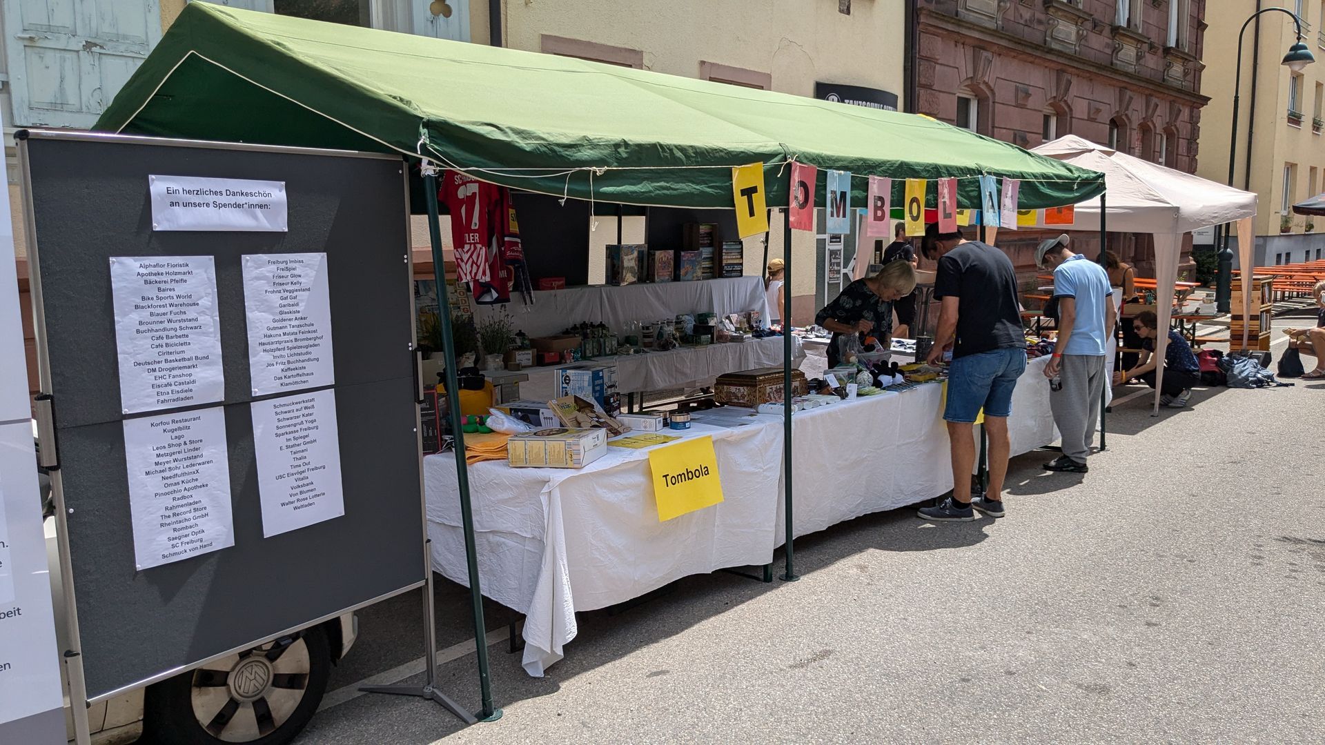 Die kleinen Regenschauer trüben nicht unseren Rückblick auf unser Brombergstraßenfest 2025 und die dem Wetter trotzenden zahlreichen Besucher*innen! An dieser Stelle möchten wir uns ganz herzlich bei allen Gästen, Mithelfenden, dem Freiburger Spielmobil, dem Kartenzauberkünstler Kit Klinkert und der musikalischen Begleitung durch das Gigolo Reinhardt Duo bedanken, die das Fest zu dem gemacht haben, was es war! Ebenso geht ein ganz besonderer Dank an alle Sponsor*innen, die uns finanziell unterstützt haben.